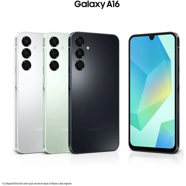Immergiti in contenuti nitidi e ricchi di dettagli con l'ampio display Super AMOLED FHD+ 6.7" di Galaxy A16, immortala ricordi dai colori vividi con la tripla fotocamera con sensore principale da 50MP e rendi unico ogni istante. Ora con la protezione IP54 puoi affrontare la giornata in perfetta serenità e restare sempre al passo con i tempi grazie alle 6 generazioni di aggiornamenti del sistema operativo e 6 anni di aggiornamenti della sicurezza.