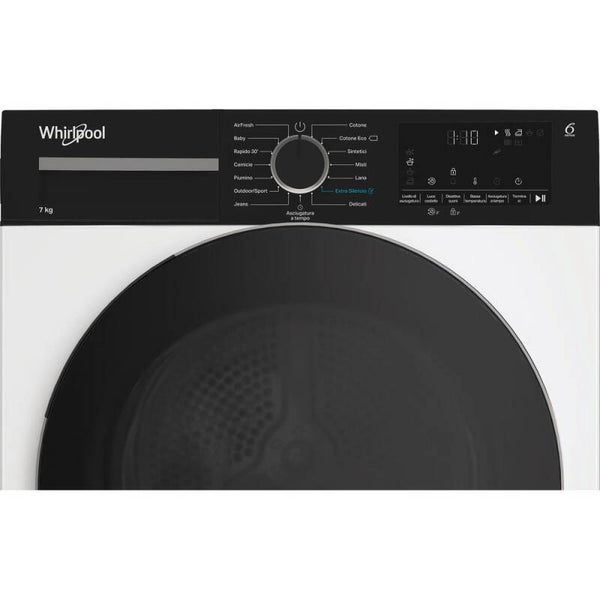 Caratteristiche di questa asciugatrice a libera installazione Whirlpool: cestello spazioso da 7,0 kg. Esclusiva tecnologia 6° SENSO che monitora costantemente il livello di umidità nel tamburo per proteggere i tuoi vestiti e garantire un'asciugatura perfetta. Tecnologia a pompa di calore riscalda efficacemente l’aria nell'elettrodomestico, riducendo significativamente il consumo energetico.